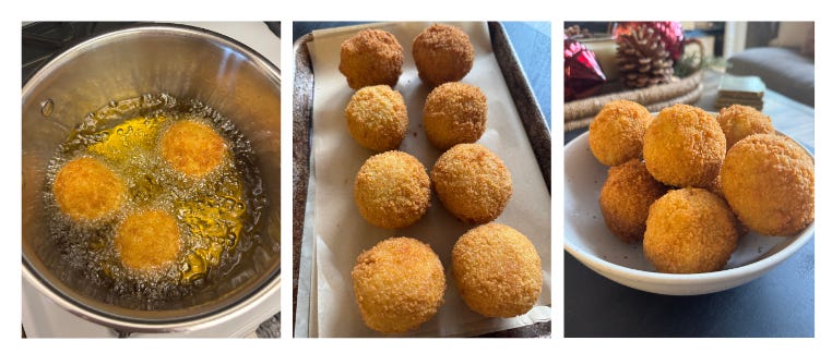 Back home, I had to recreate them. I often find myself making risotto for dinner solely for the reason of having leftover risotto to then turn into arancini the next day. They also happen to be the perfect holiday bite. Nostalgic, cozy, endlessly riffable, with so many flavor options: